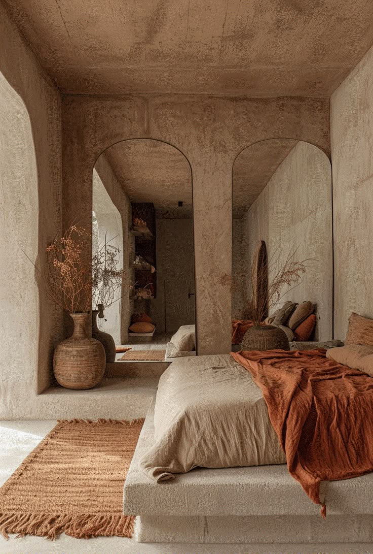 Các gam màu đất như nâu socola, cam đất, vàng mù tạt và xanh ô liu trở lại mạnh mẽ, tạo cảm giác ấm áp và gần gũi. Màu xanh lá cây đậm cũng được sử dụng rộng rãi, mang lại sự tươi mới và thư thái cho không gian . Chất liệu tự nhiên như gỗ, đá và vải lanh được ưu tiên, góp phần tạo nên không gian sống gần gũi và thân thiện với môi trường. Đặc biệt, việc sử dụng sàn không ron với các vật liệu như microcement, sàn nhựa epoxy hay sàn sỏi epoxy không chỉ tạo sự liền mạch, sạch sẽ mà còn mang lại cảm giác thoải mái, dễ chịu khi di chuyển. Những lựa chọn này không chỉ đáp ứng nhu cầu thẩm mỹ mà còn nâng cao chất lượng cuộc sống, biến ngôi nhà thành nơi thư giãn lý tưởng